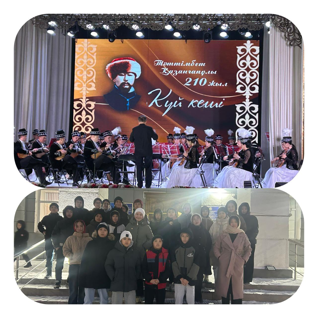 7, 8-сынып интернат тәрбиеленушілері Тәттімбет Қазанғапұлының 210 жылдық мерейтойына орай ұйымдастырылған күй кешіне қатысып қайтты.